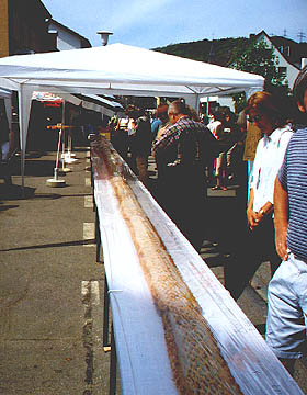 Ein 15 Meter langer Apfelstrudel wurde als Jubiläumsaktion zugunsten der Freiw. Feuerwehr verkauft.